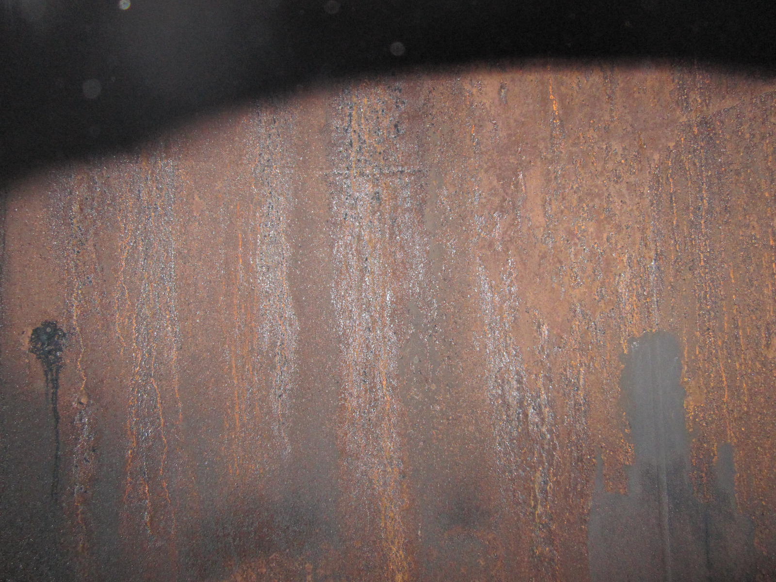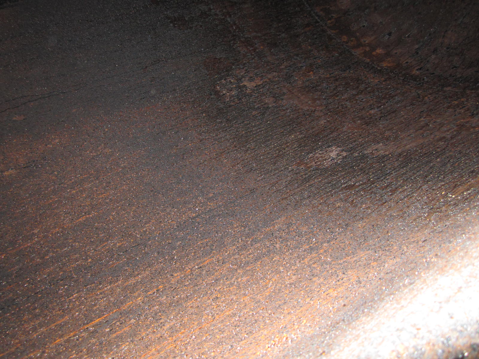 2011年10月19號(hào)打開了T-201、T-202、T-301、T-302、T-303的人孔,經(jīng)過實(shí)地勘察和拍照取證我們發(fā)現(xiàn)設(shè)備的腐蝕情況較為嚴(yán)重。T-301、T-302、T-303整體腐蝕都非常嚴(yán)重,內(nèi)表層全部覆蓋滿銹跡,有些地方鐵銹層能達(dá)到2毫米左右。T-201塔底腐蝕不是很厲害銹跡較少,中部開始腐蝕銹跡慢慢變多,越往塔上部腐蝕越嚴(yán)重鐵銹層也越厚,最厚處銹層也能達(dá)到2毫米左右。T-202腐蝕也很嚴(yán)重能看見大片的銹跡不過銹層不是很厚。