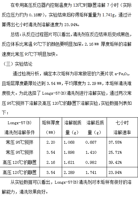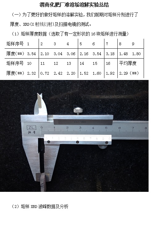 | 渭南化肥廠EA102 難溶垢溶解實驗總結 |